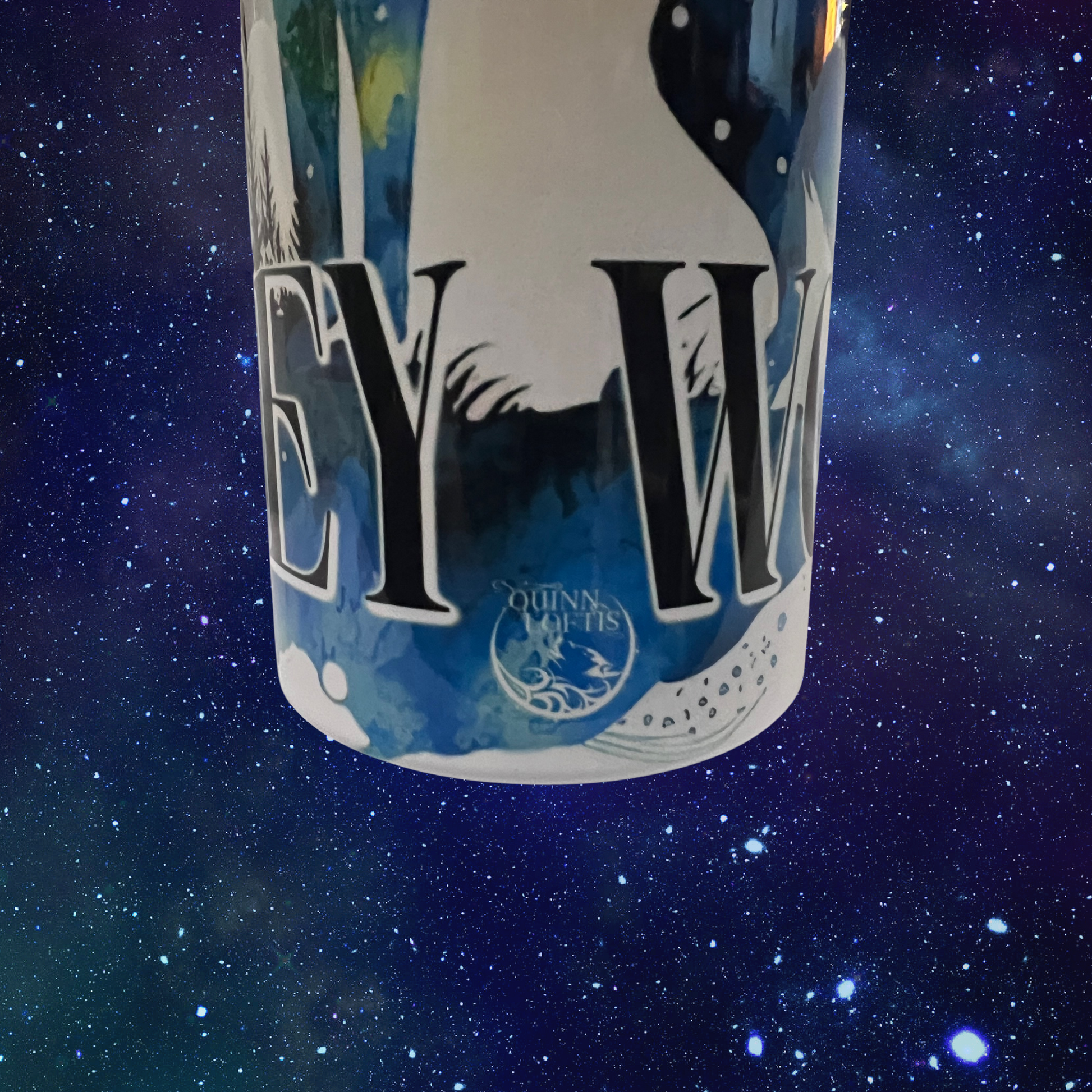 20 oz steel tumbler with lid and steel straw. Images show the tumbler in various positions and then a flat whole image of what is pictured on the tumbler.